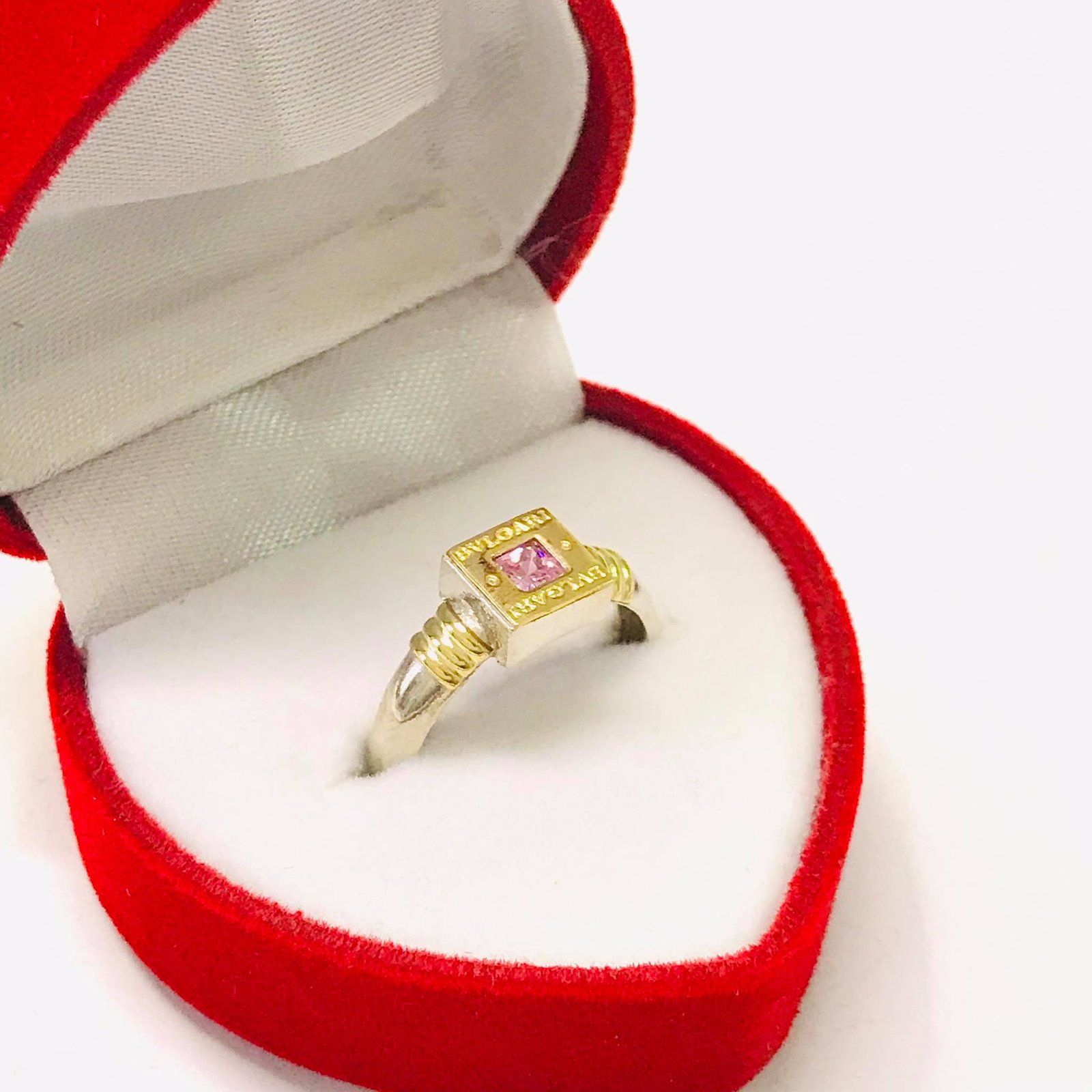 ANILLO BVLG cuadrado rosa de Plata y oro