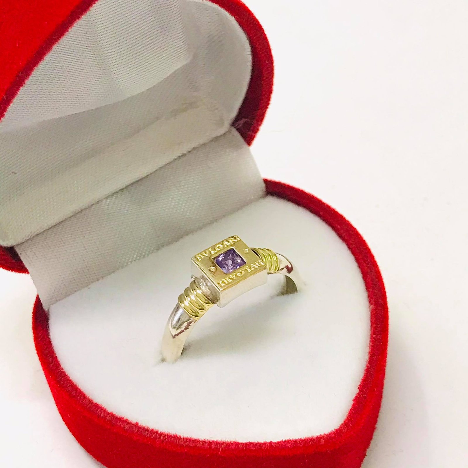ANILLO BVLG cuadrado amatista de Plata y oro