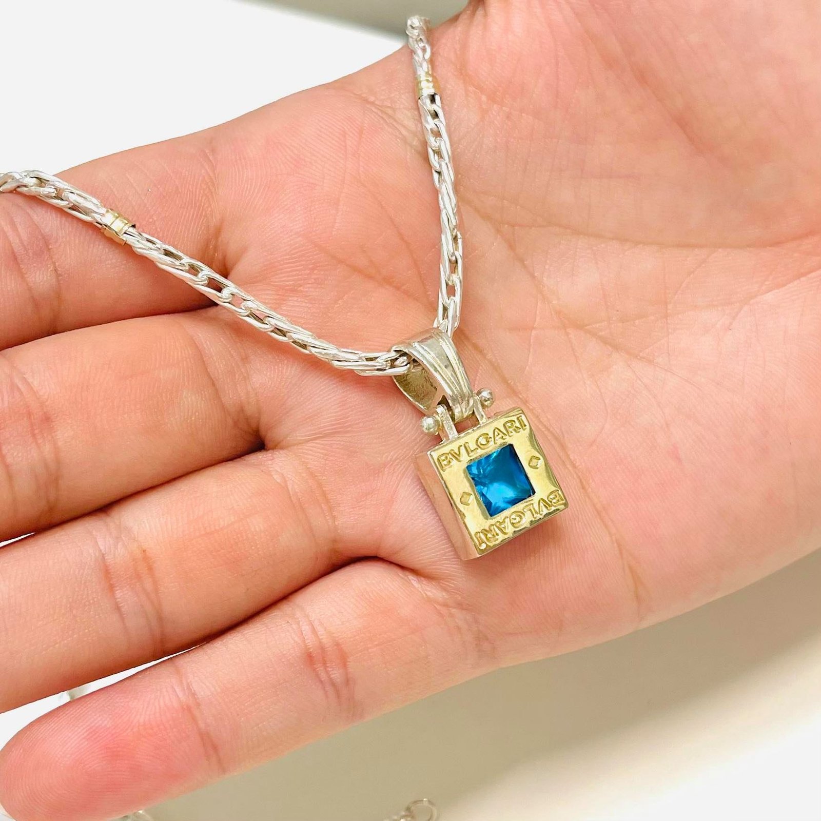 Cadena espiga con dije BVLG Agua grande Plata y Oro
