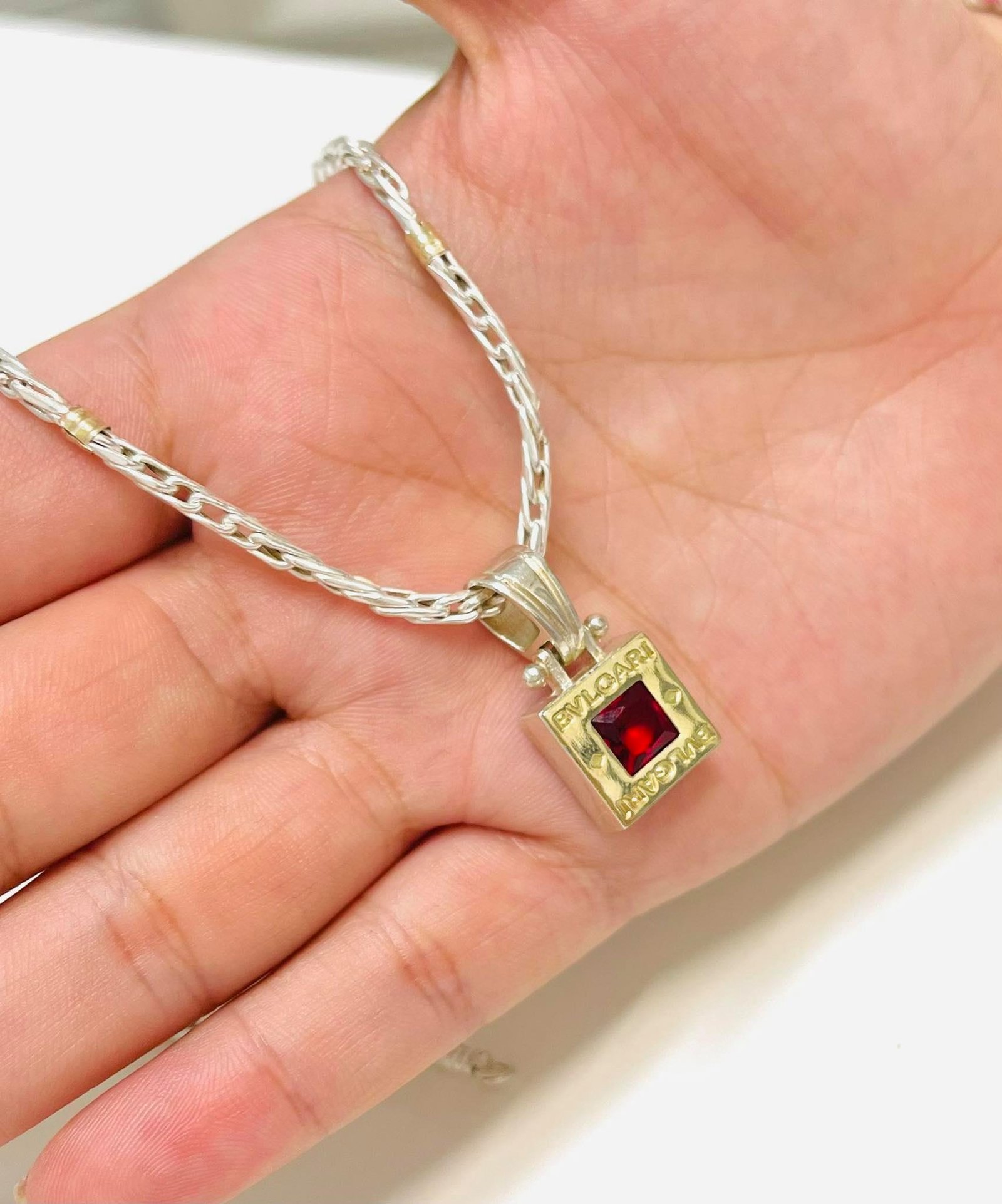 Cadena espiga con dije BVLG Rubi grande Plata y Oro