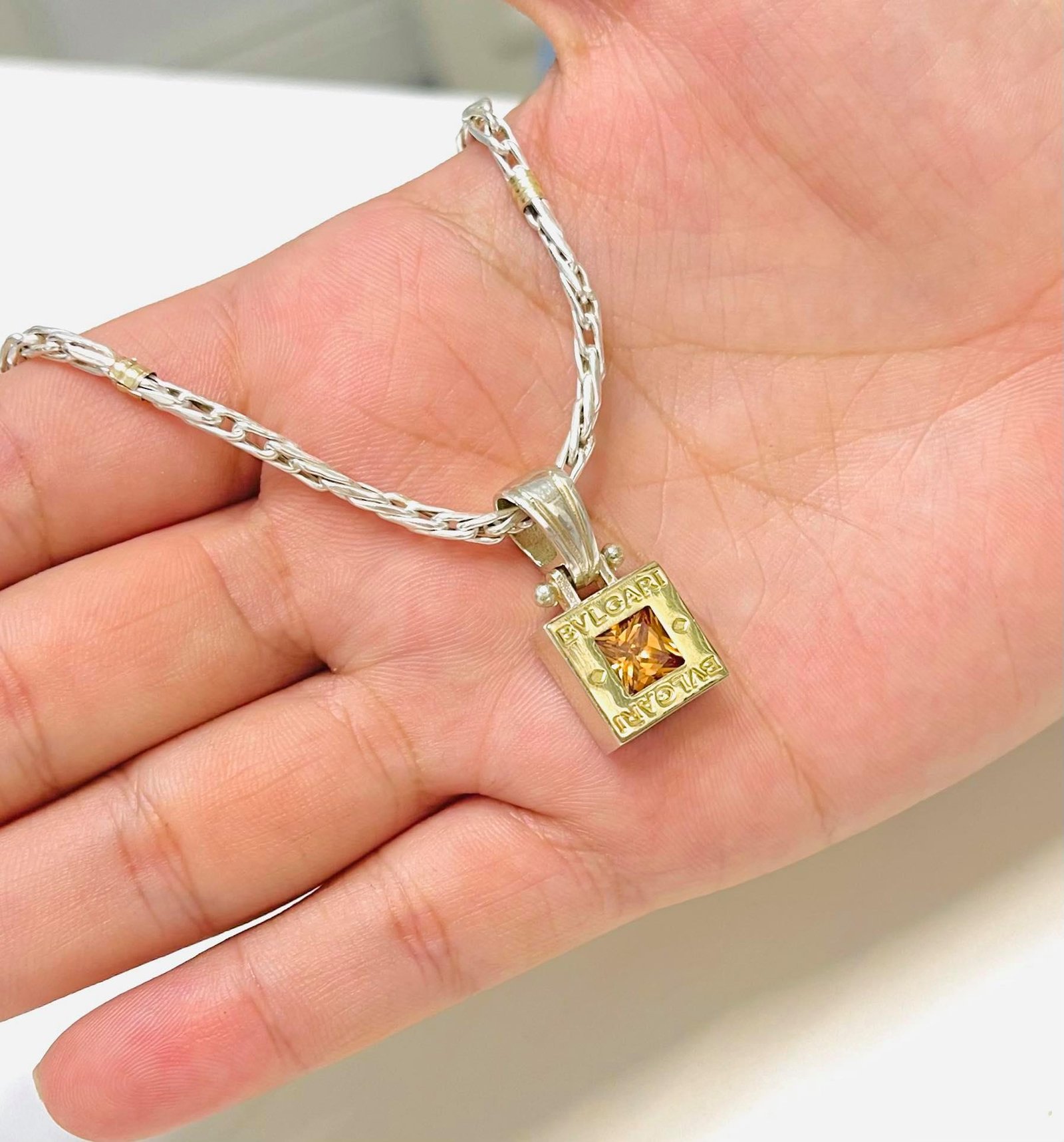 Cadena espiga con dije BVLG ambar grande Plata y Oro