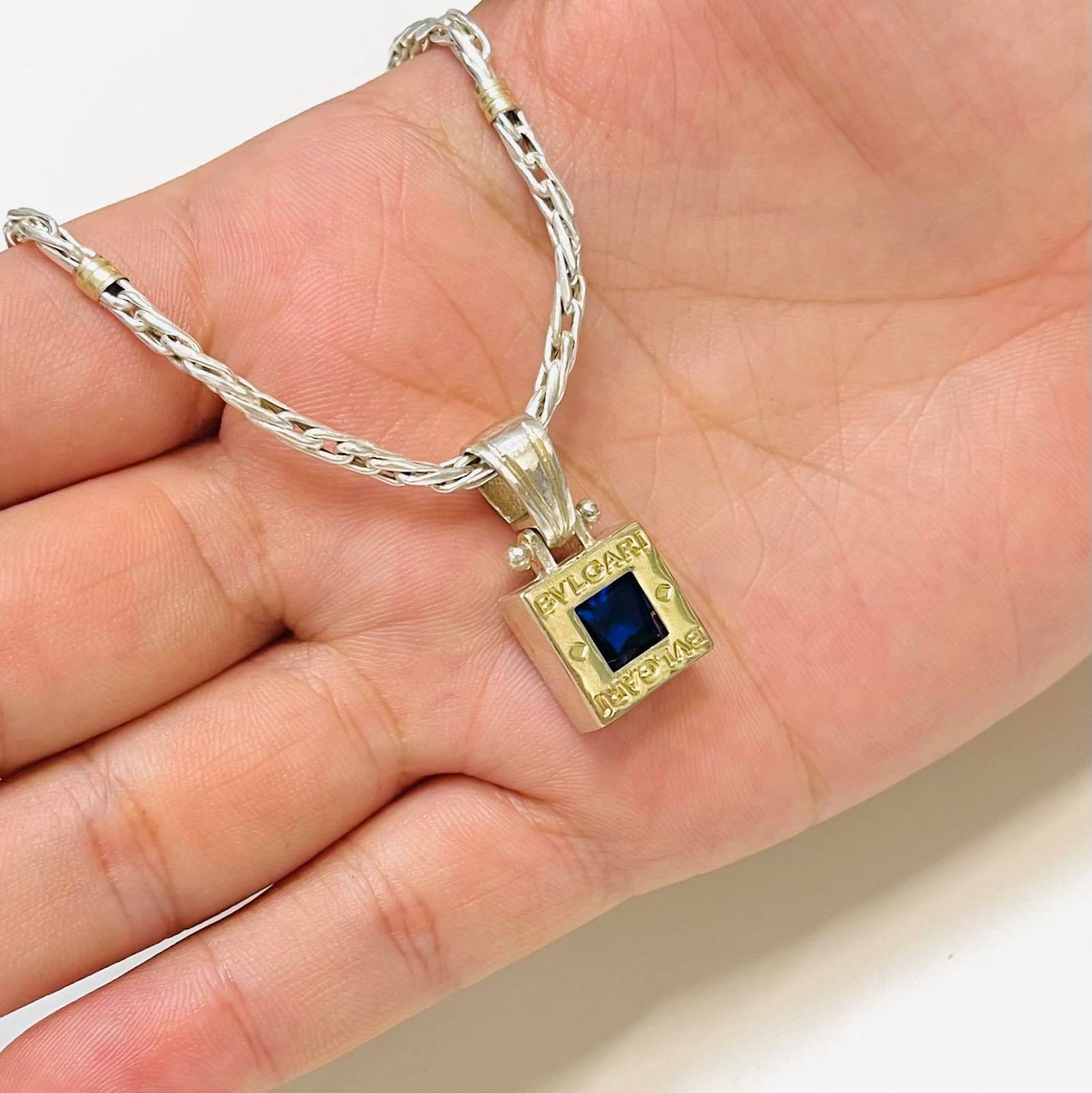 Cadena espiga con dije BVLG Zafiro grande Plata y Oro