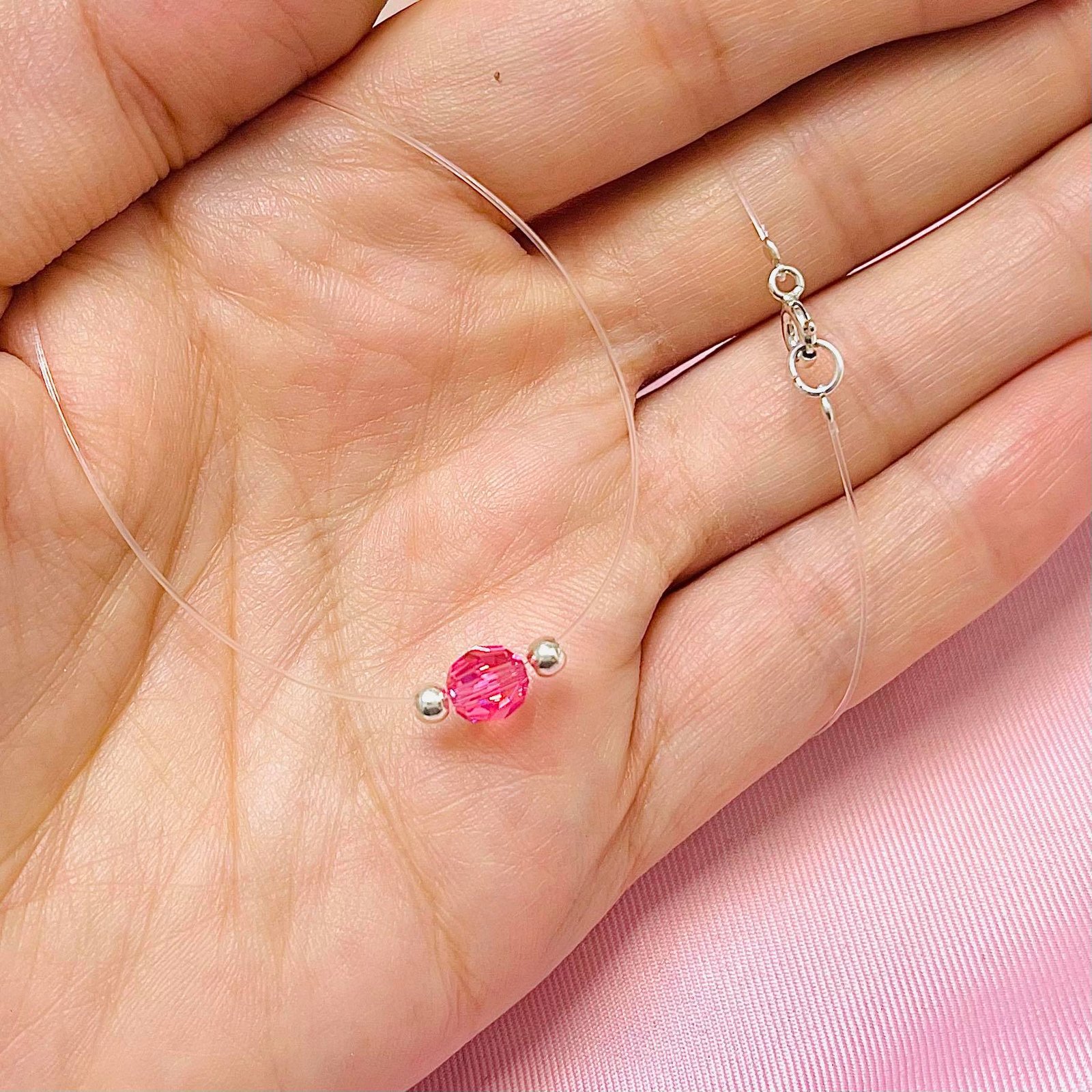 Choker TANZA INVISIBLE y dije SWAROWSKI Redondo rosa con Bolitas