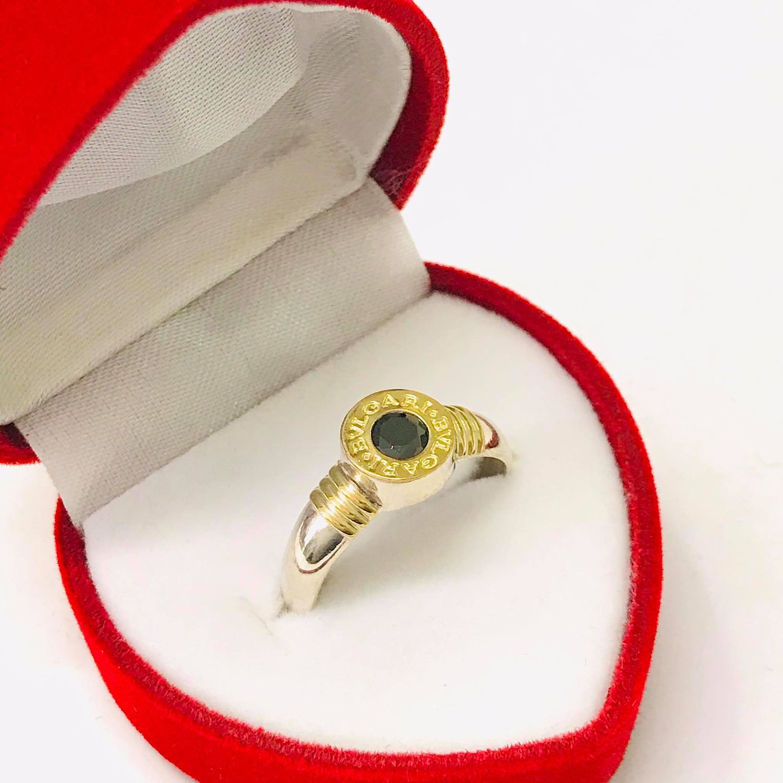 ANILLO BVLG Redondo chico negro de Plata y oro