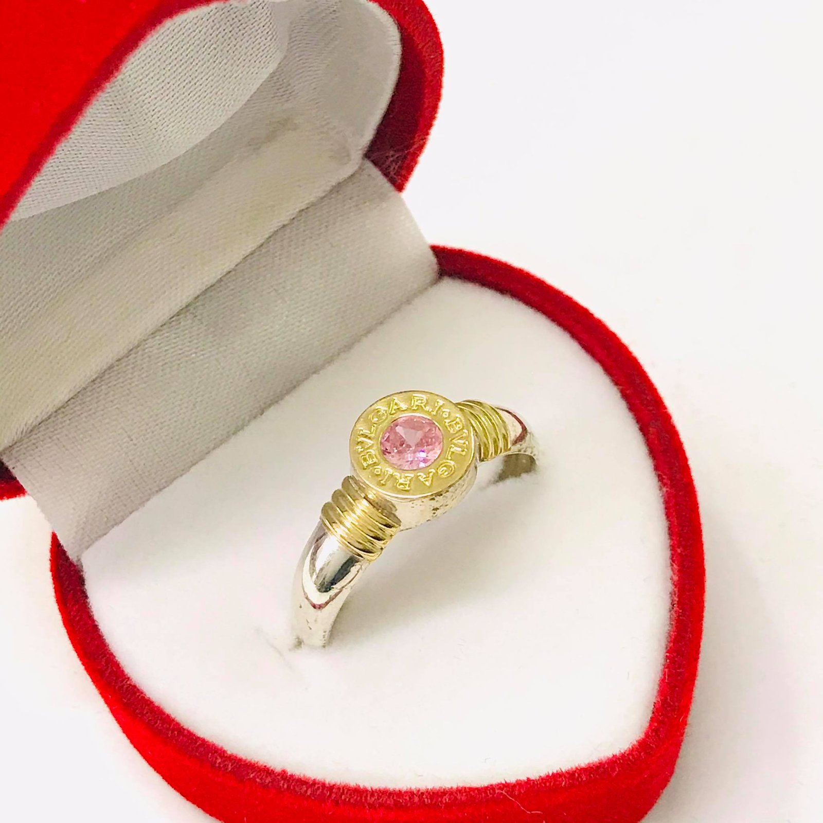 ANILLO BVLG Redondo chico rosa de Plata y oro