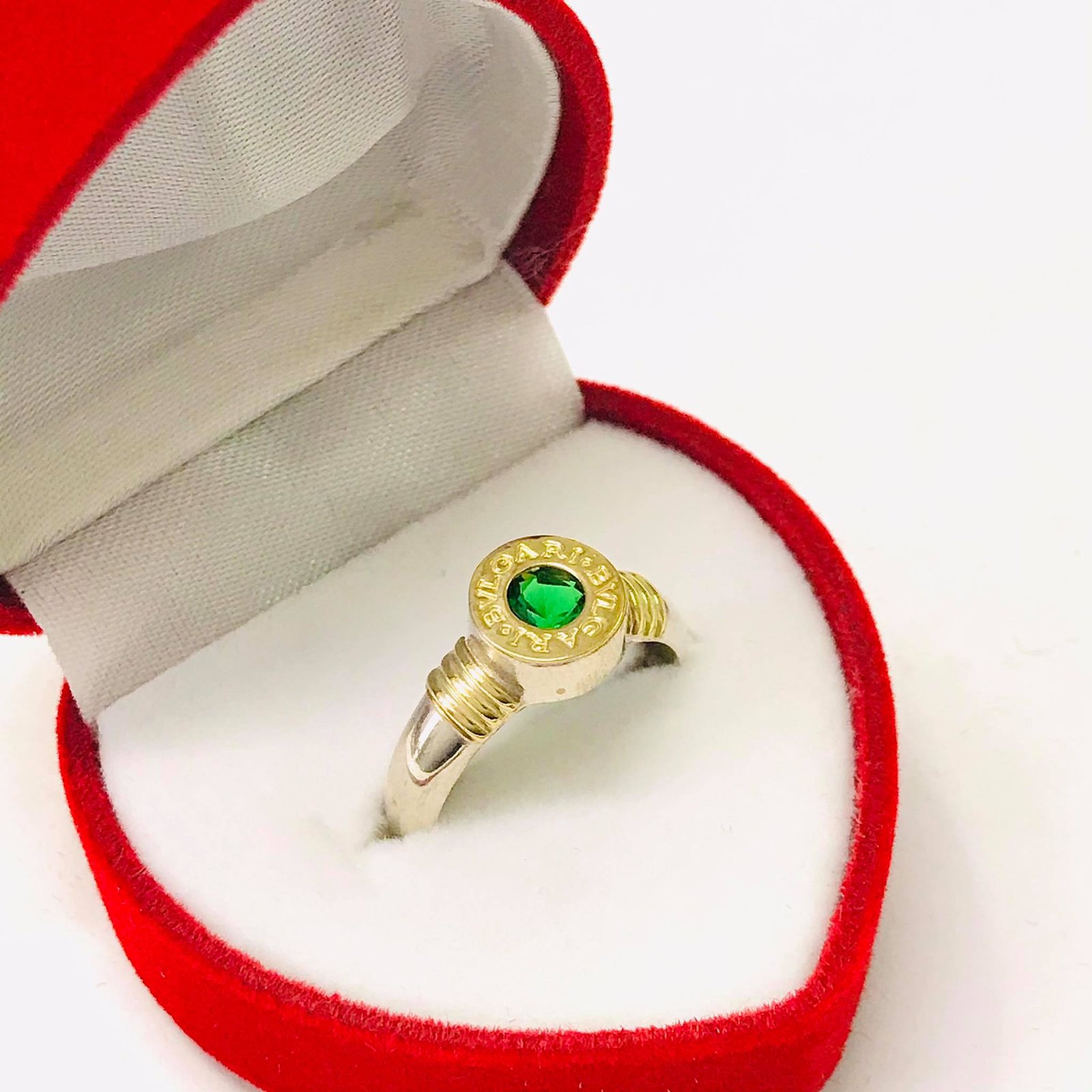 ANILLO BVLG Redondo chico Esmeralda de Plata y oro