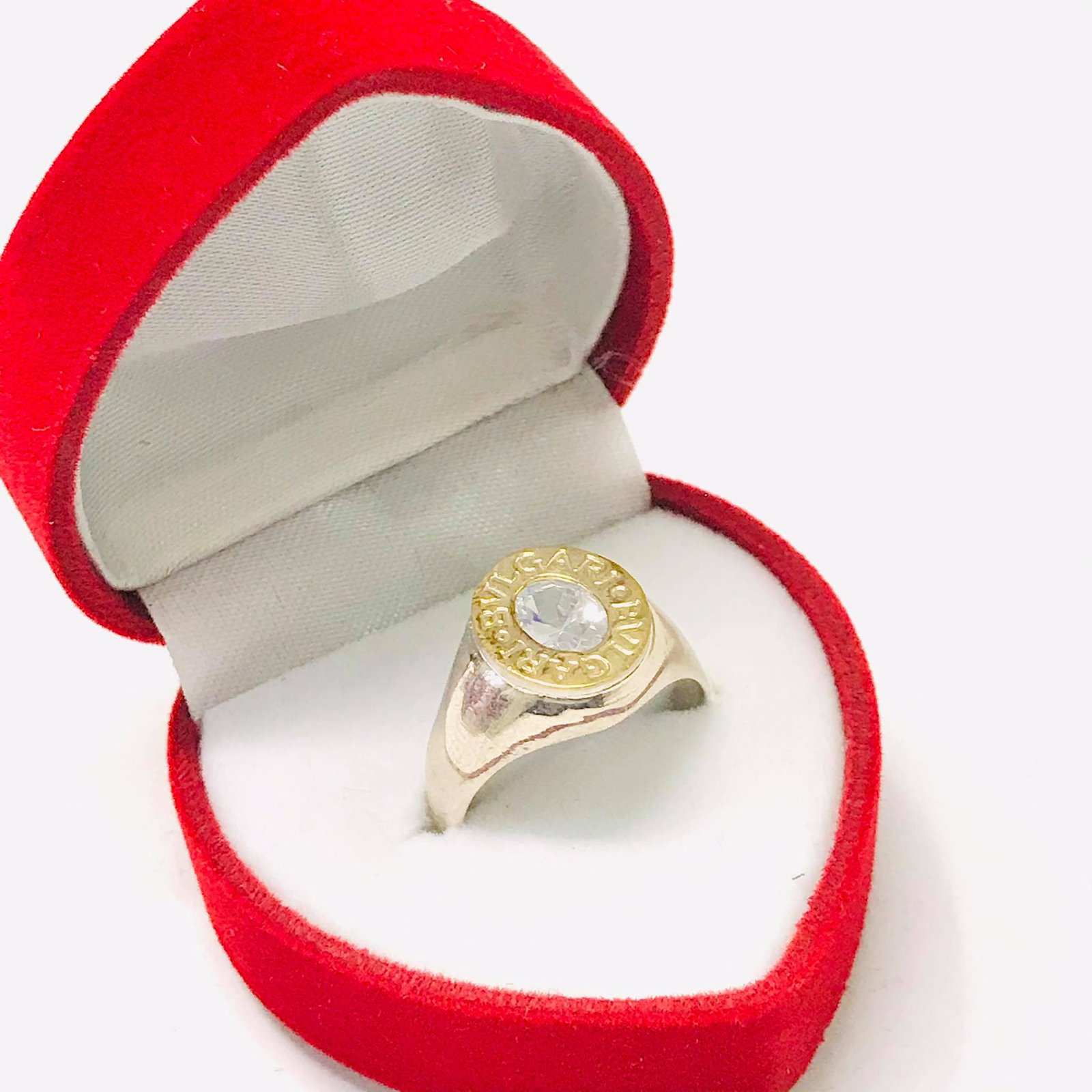 ANILLO BVLG Ovalado Blanco de Plata y oro