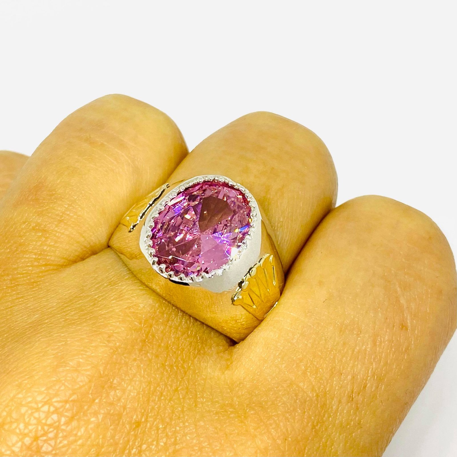ANILLO SELLO CON CUBIC ROSA Plata y Oro