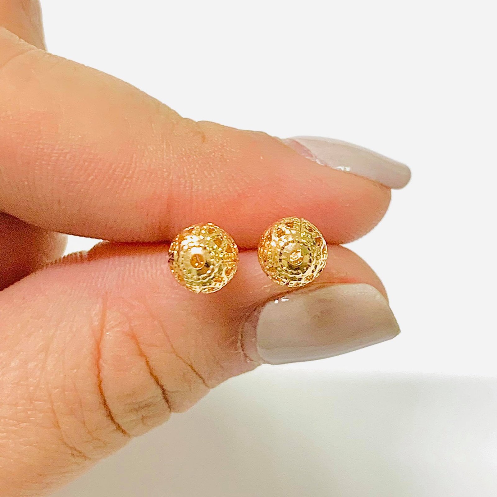 Aros Bolita encaje con baño de oro Rose