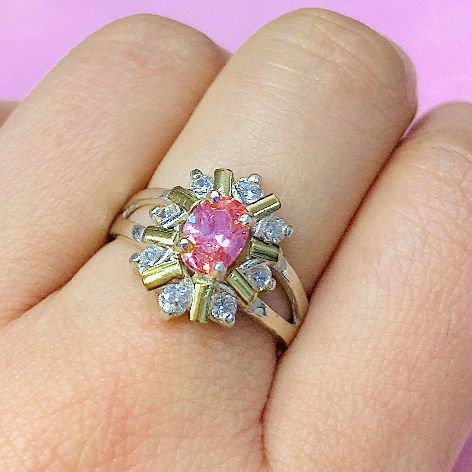 anillo roseta de sol con cubic rosa