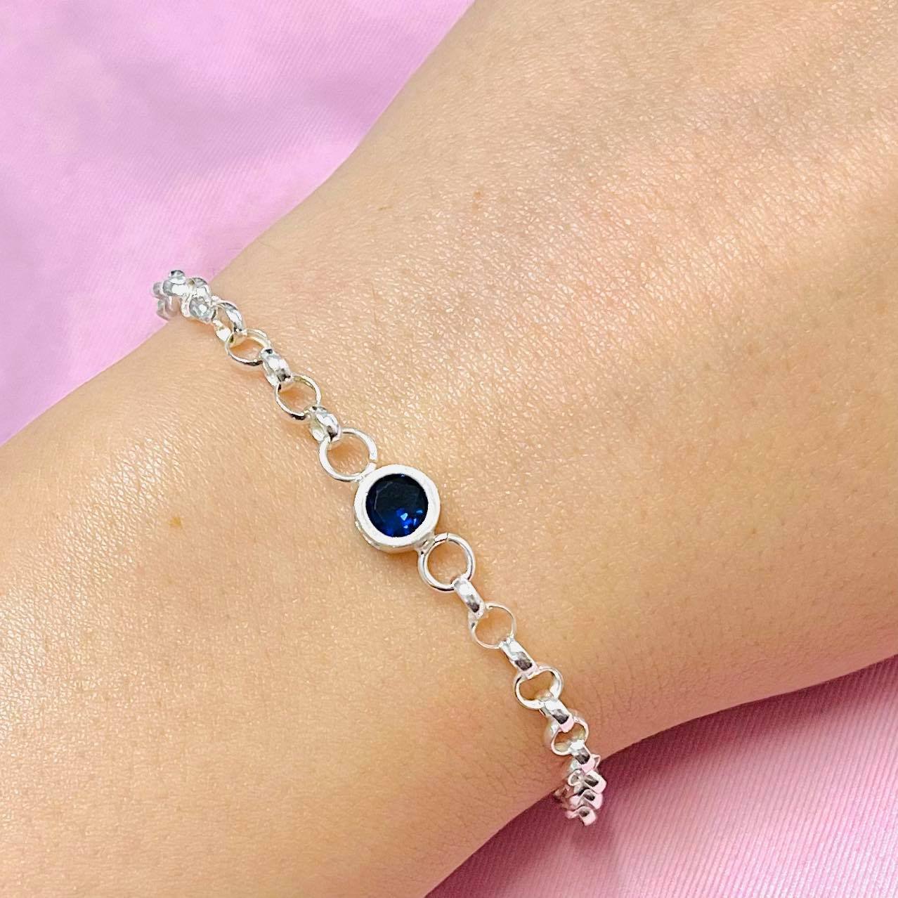 Pulsera con dije redondo chico zafiro plata 925