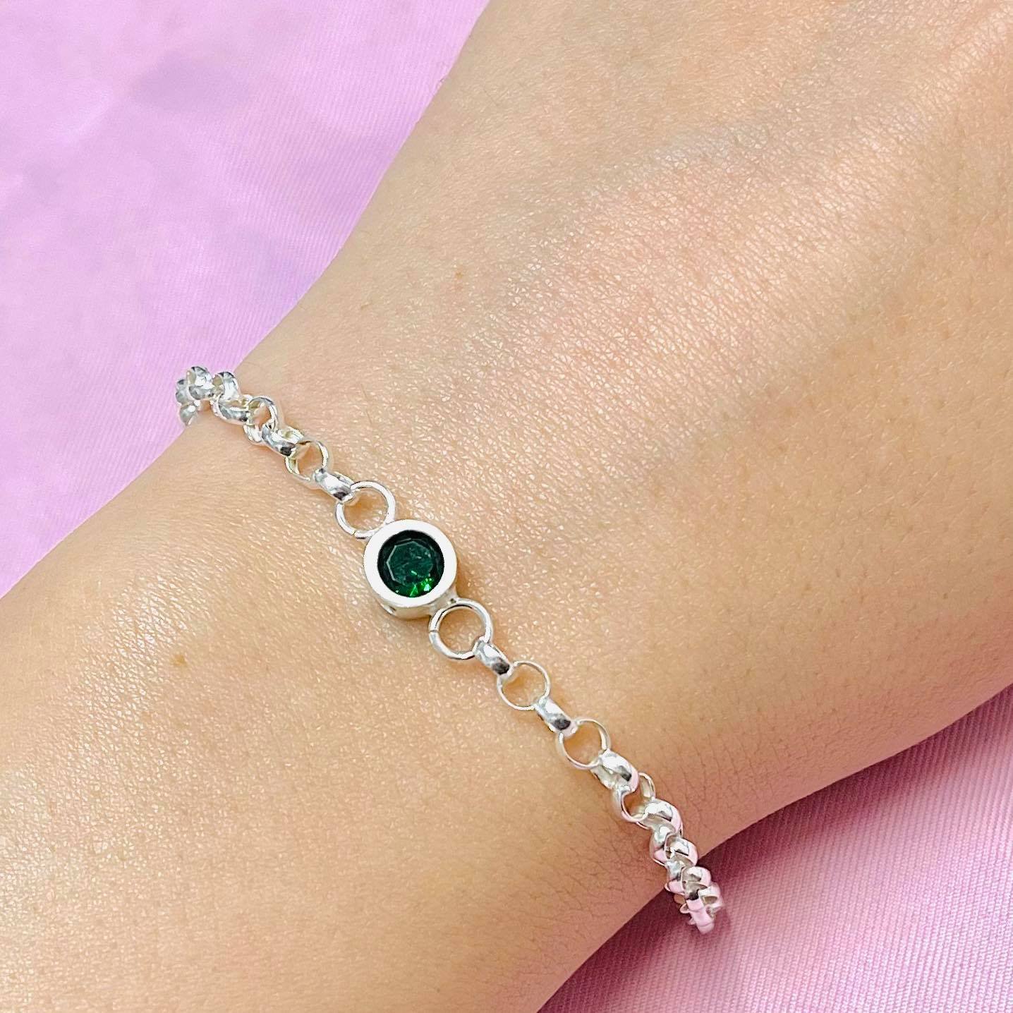 Pulsera con dije redondo chico esmeralda plata 925