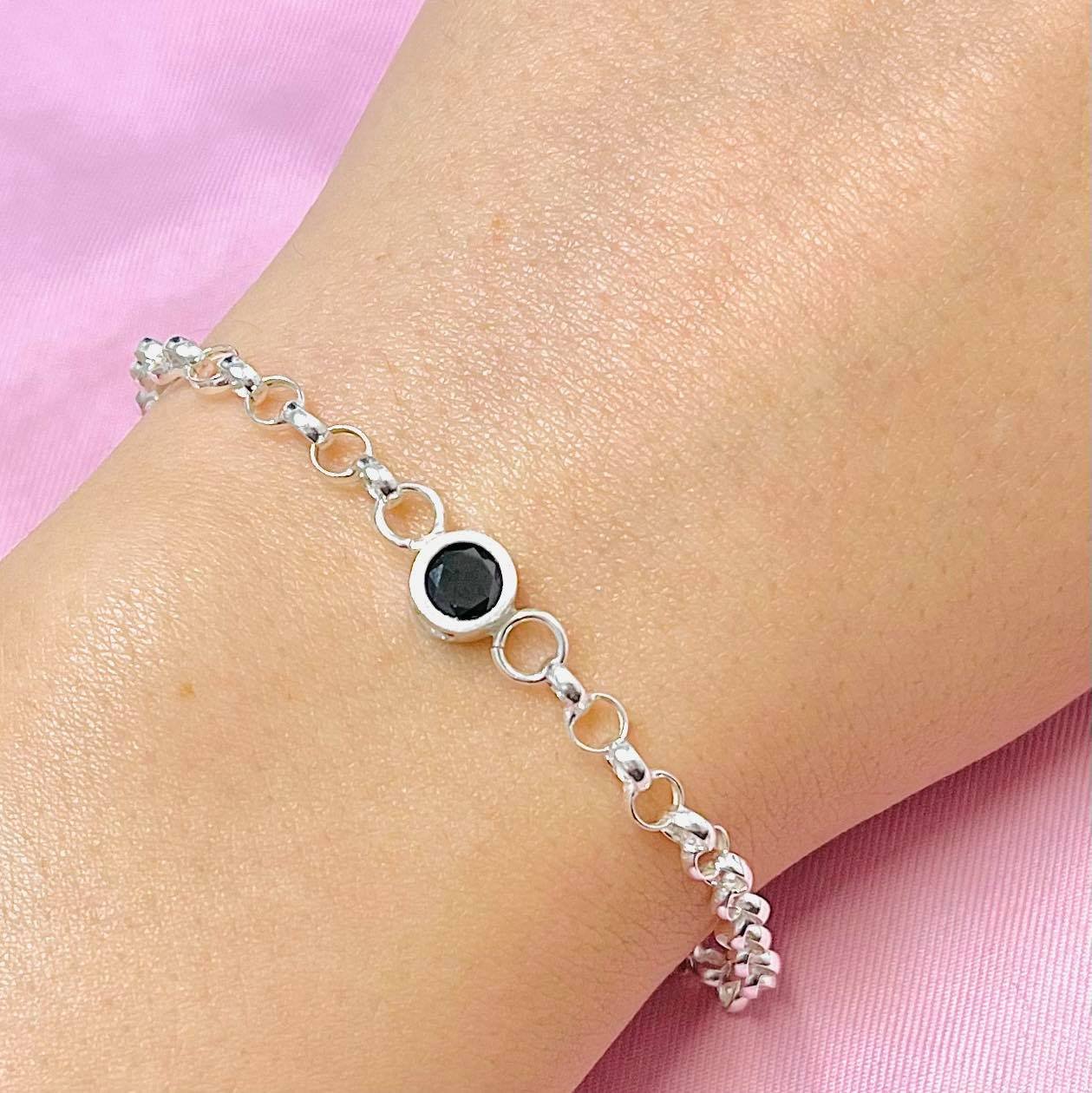 Pulsera con dije redondo chico negro plata 925