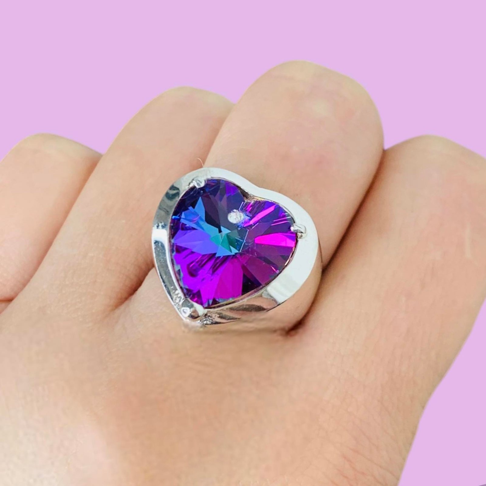 Anillo Corazon Con Swarovski Amatista Plata 925
