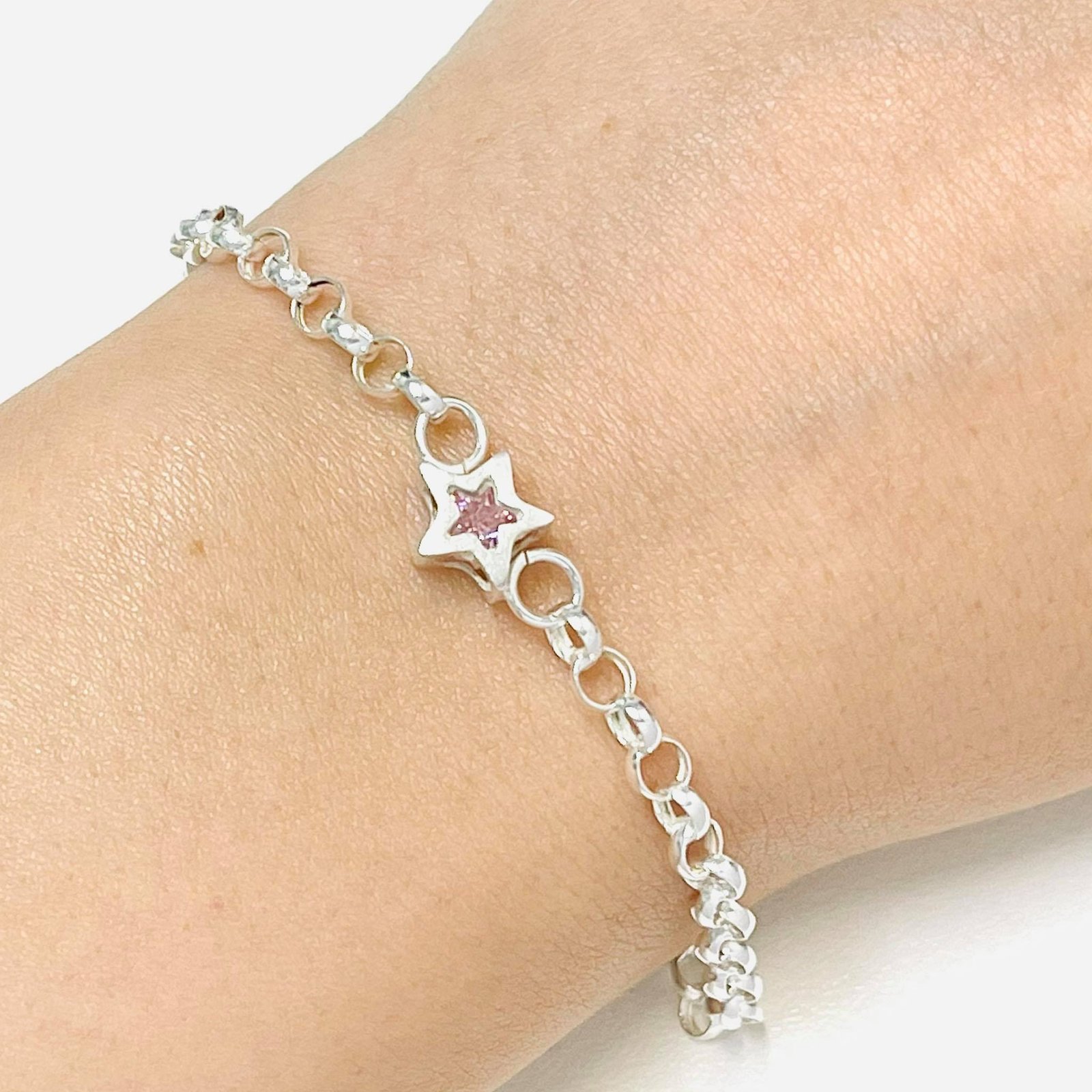 Pulsera con dije Estrella chica rosa plata 925