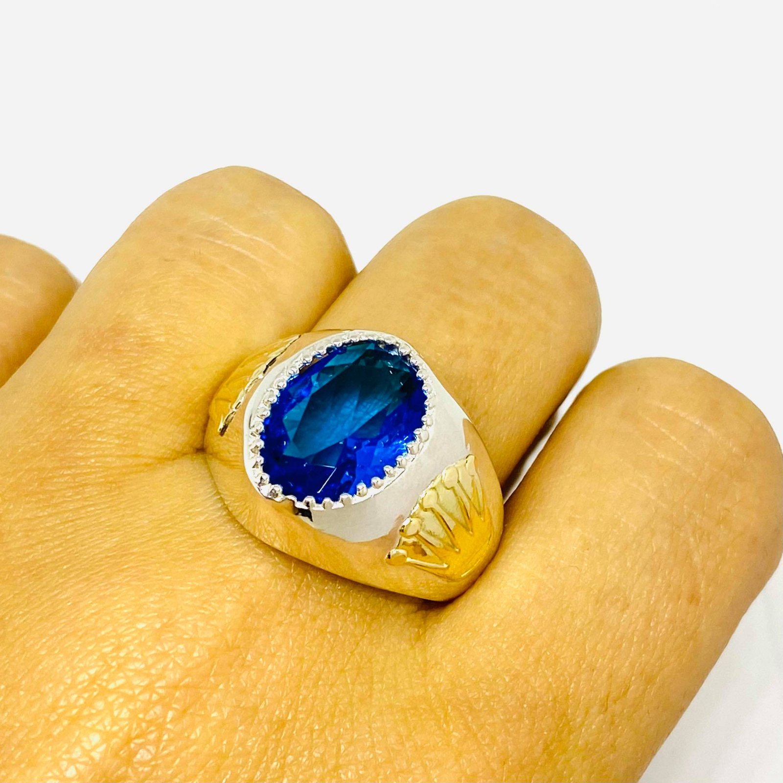 ANILLO SELLO CON CUBIC Aguamarina Plata y Oro