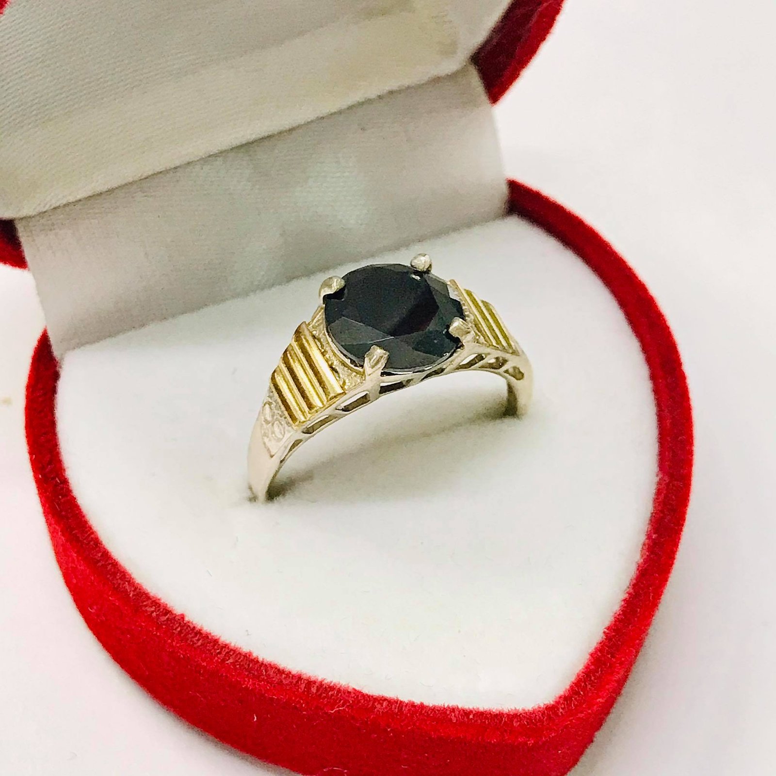 Anillo solitario Veronica con piedra Negro Plata y oro