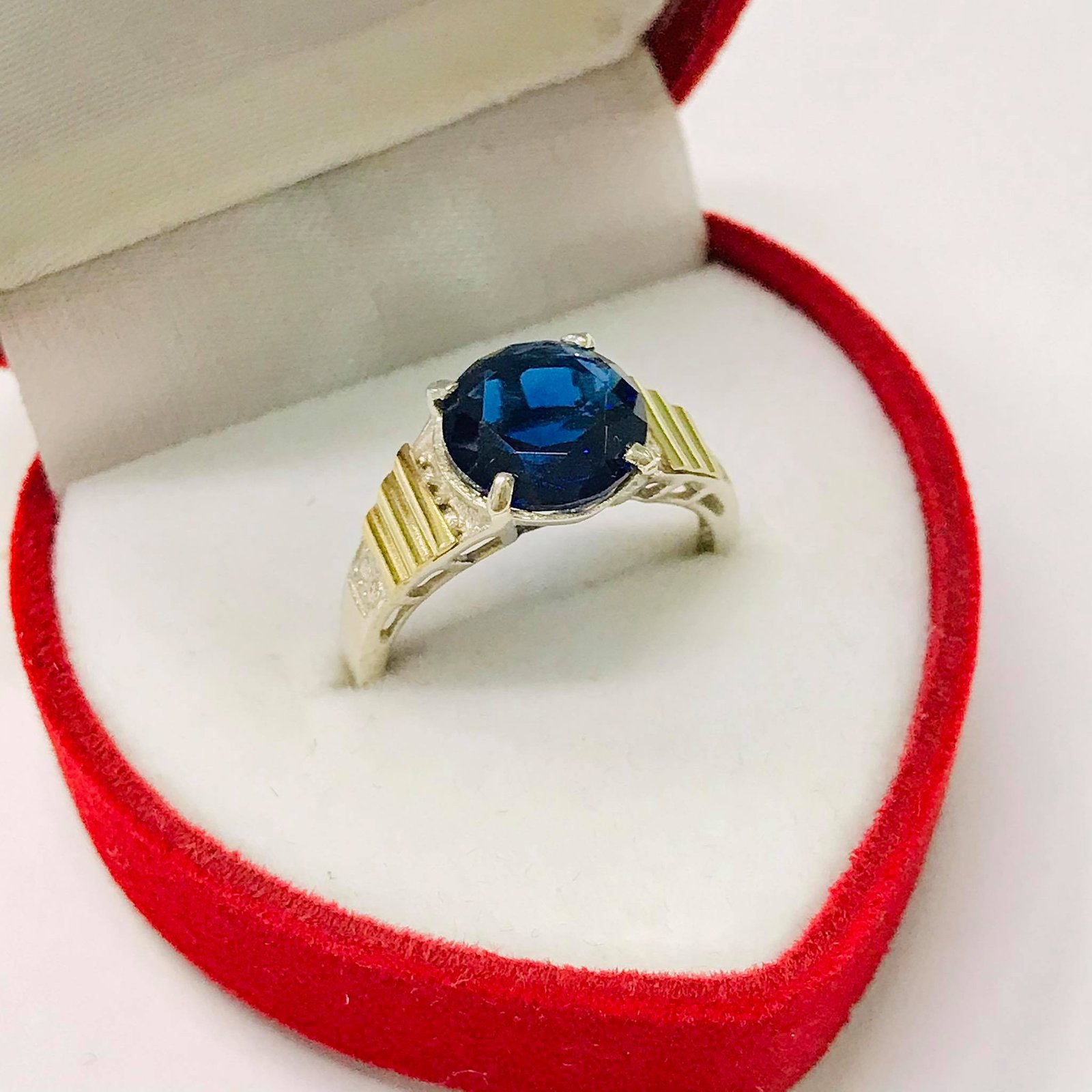 Anillo solitario Veronica con piedra zafiro Plata y oro