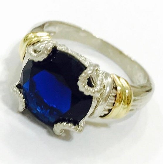 Anillo Lucrecia con cubic zafiro de Plata y Oro