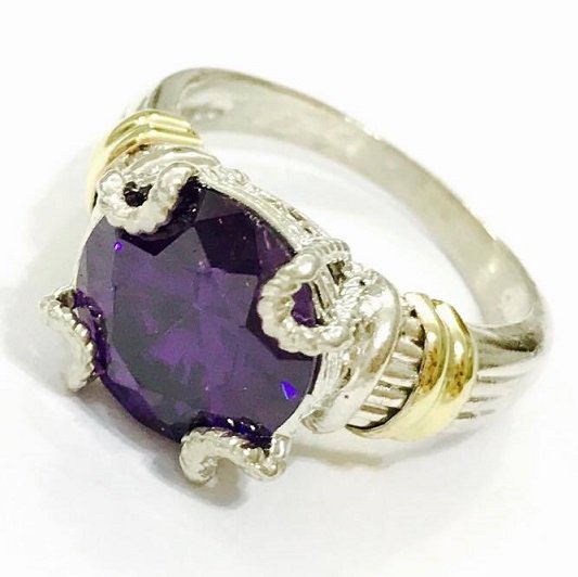 Anillo Lucrecia con cubic AMATISTA de Plata y Oro