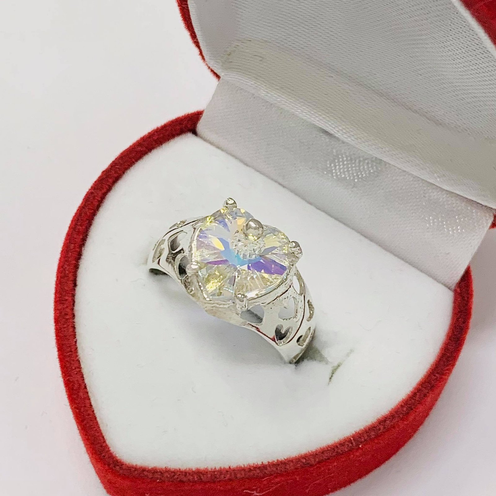 Anillo Corazon Con Swarovski Aurora Boreal Plata 925