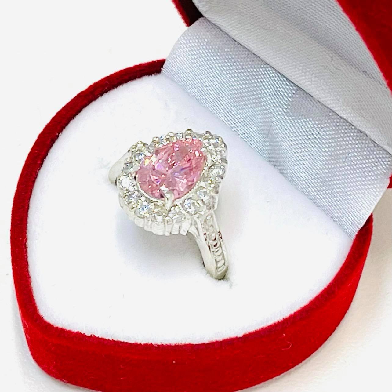 Anillo de Compromiso Princesa Diana gota Rosa Plata 925