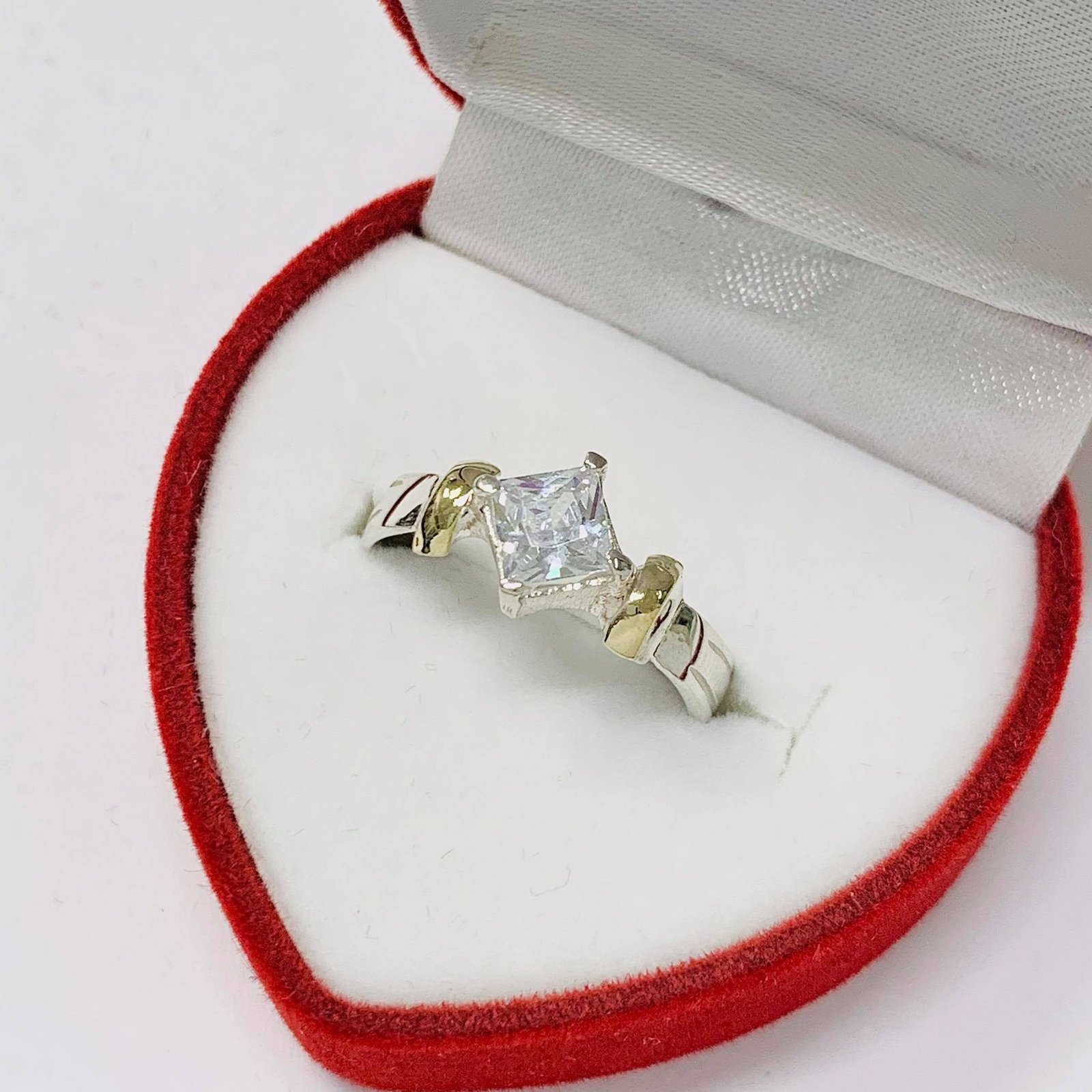 Anillo Gise con Piedra blanca Plata y Oro