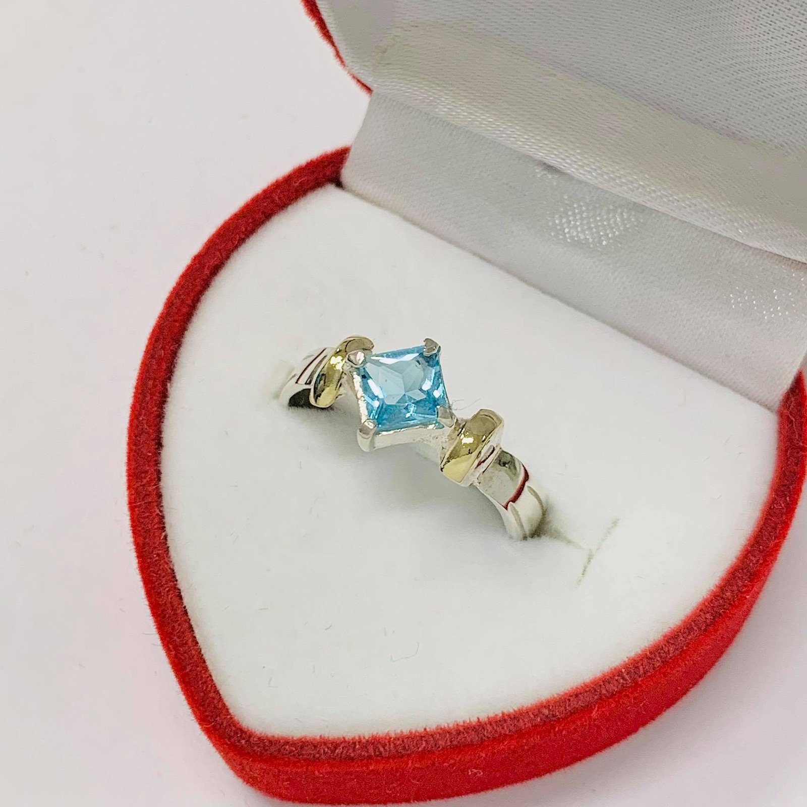 Anillo Gise con Piedra agua Plata y Oro