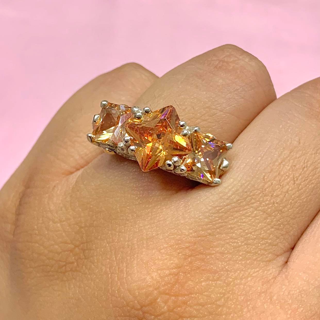 anillo realeza con trio cubic ambar