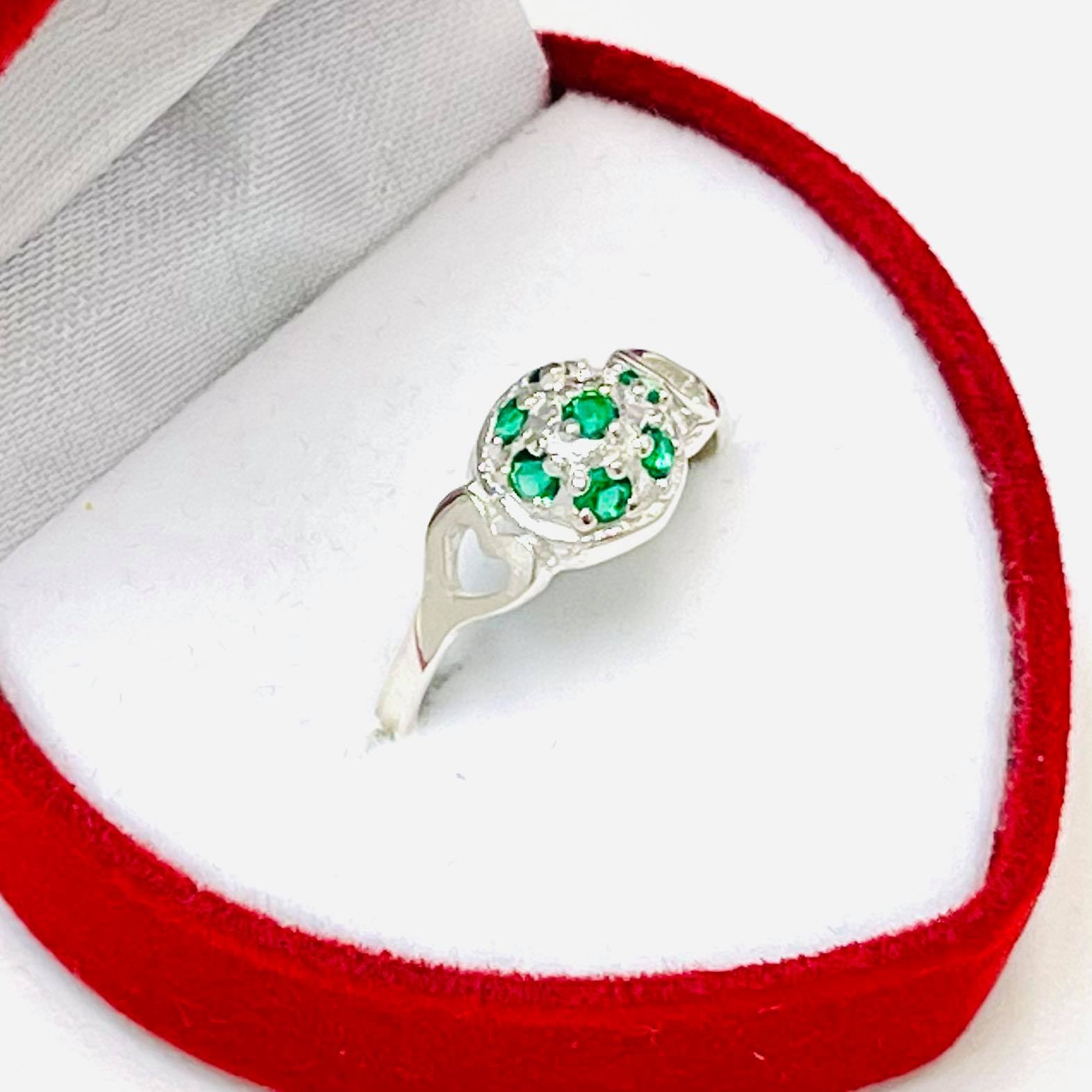 Anillo Frutillita esmeralda con corazon Plata 925