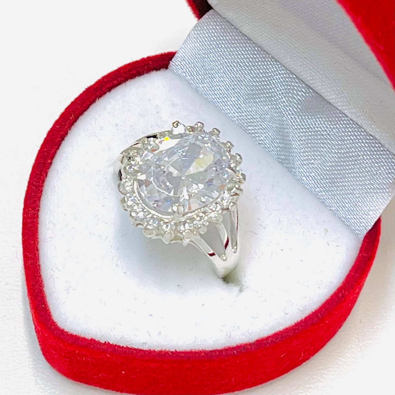 Anillo de Compromiso Princesa Diana oval Blanco Plata 925