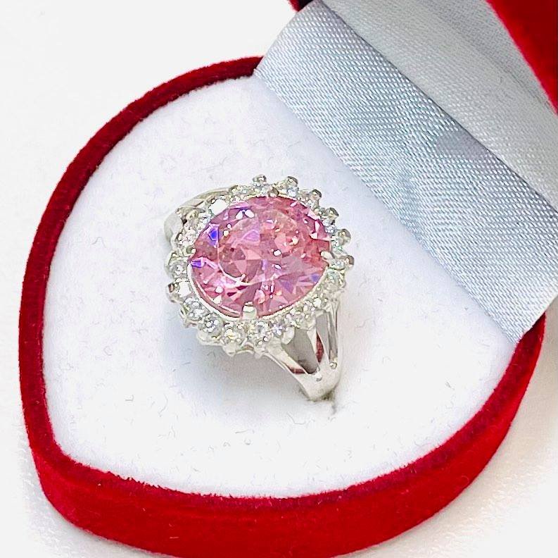 Anillo de Compromiso Princesa Diana oval Rosa Plata 925