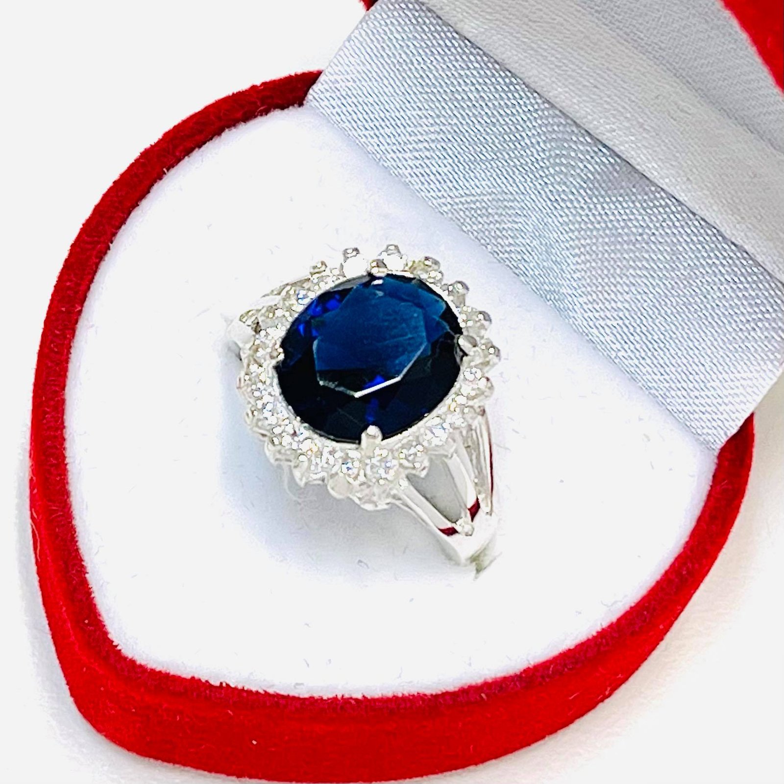 Anillo de Compromiso Princesa Diana oval Zafiro Plata 925