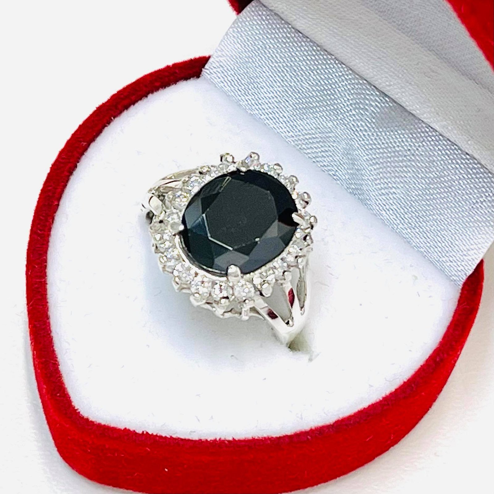 Anillo de Compromiso Princesa Diana oval negro Plata 925
