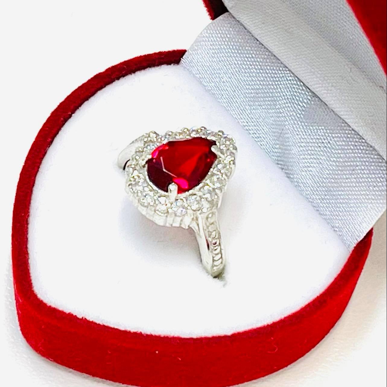 Anillo de Compromiso Princesa Diana gota rubi Plata 925
