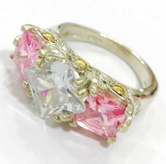 » anillo realeza con trio cubic rosa-blanco