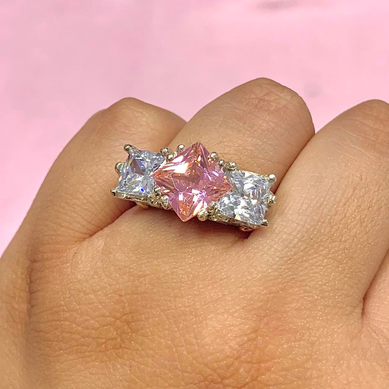 » anillo realeza con trio cubic blanco-rosa