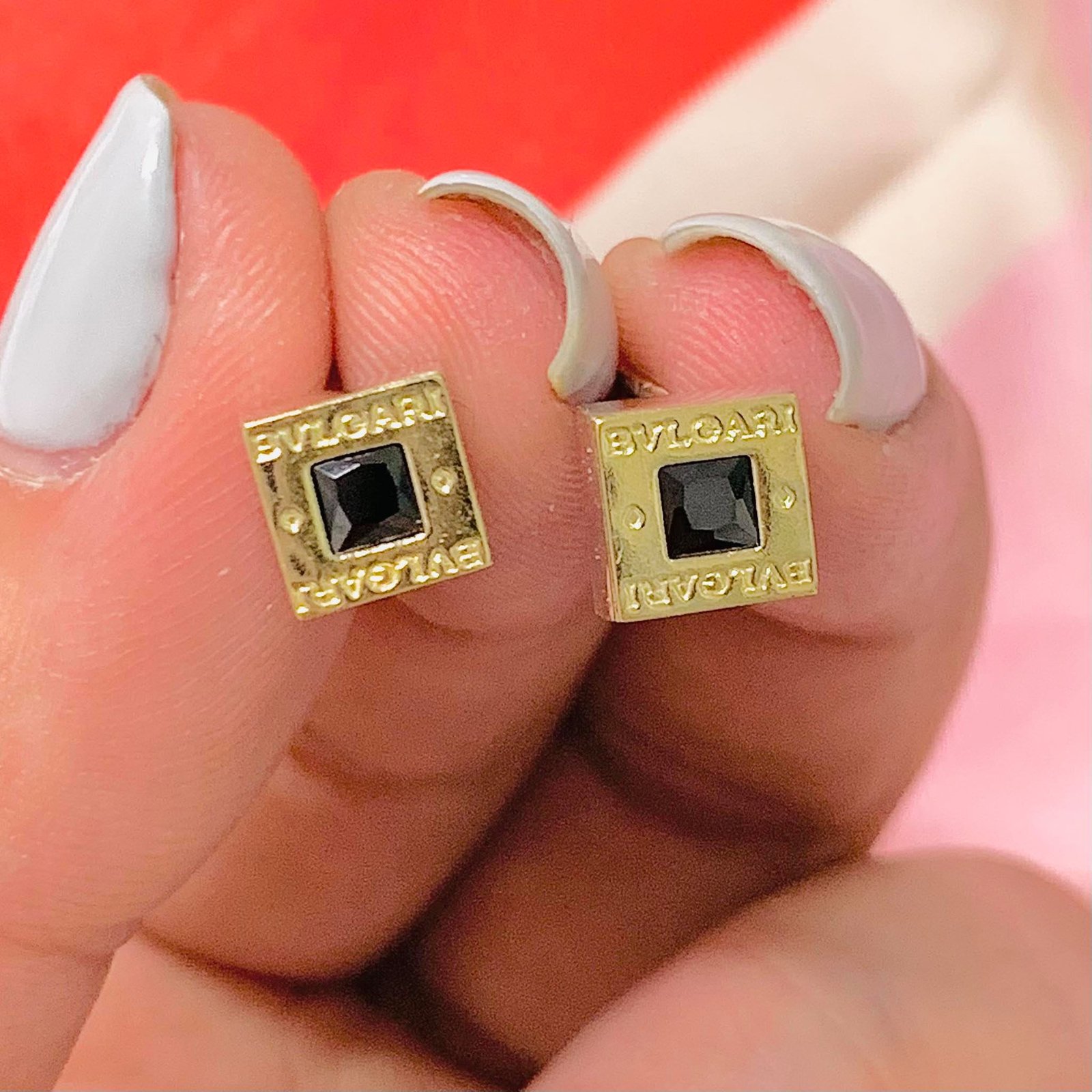 Aros BVL Cuadrado chico con cubic negro de Plata y Oro