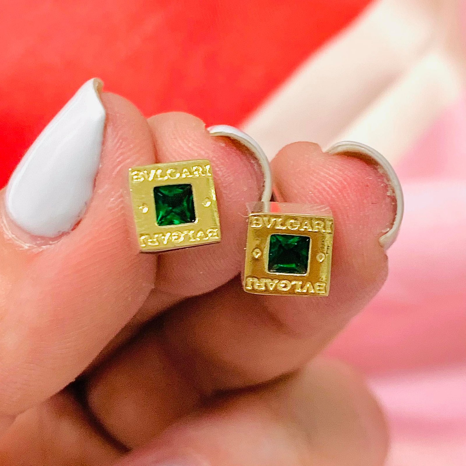 Aros BVL Cuadrado chico con cubic esmeralda de Plata y Oro