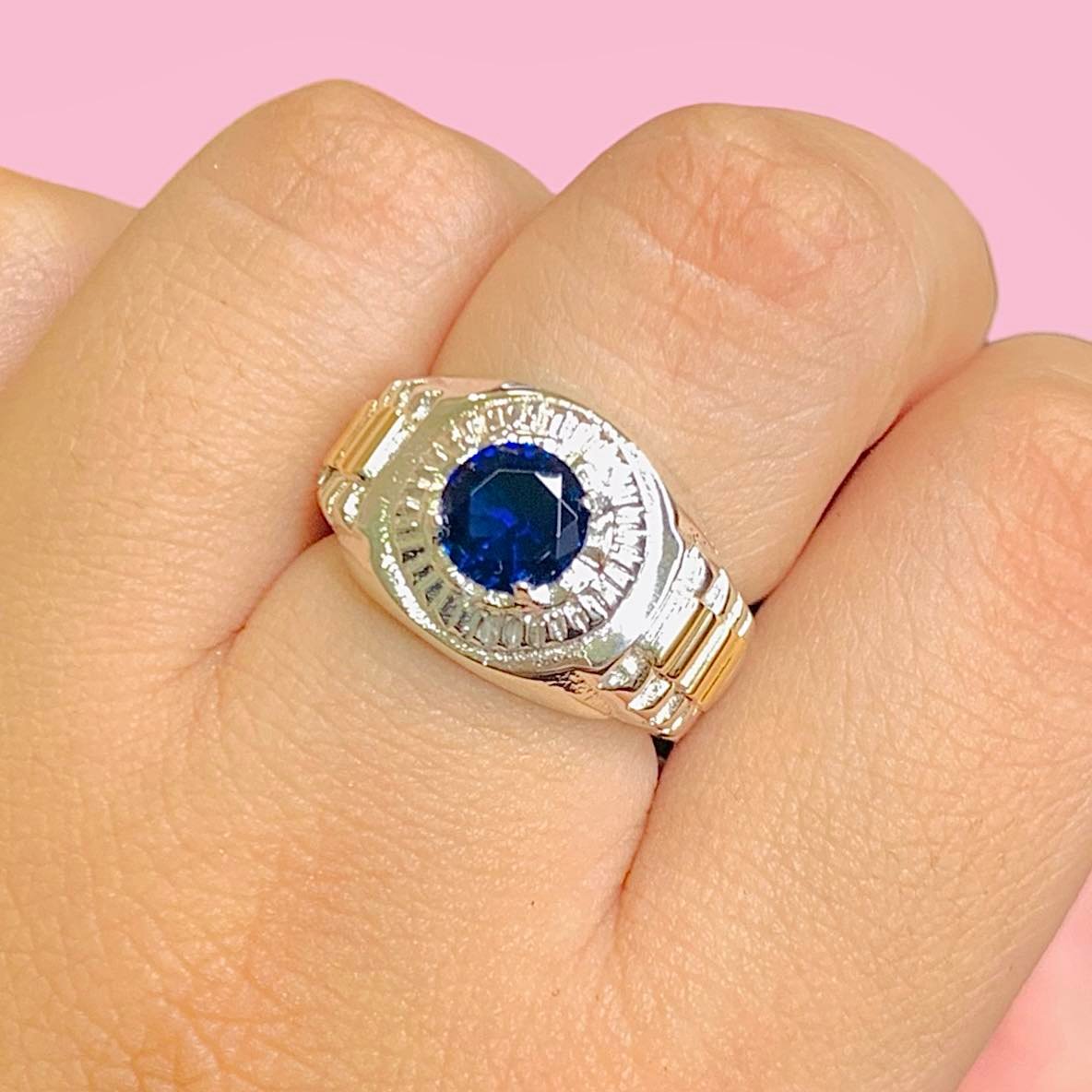 Anillo para hombre rolex Grande zafiro para Hombre de Plata y Oro