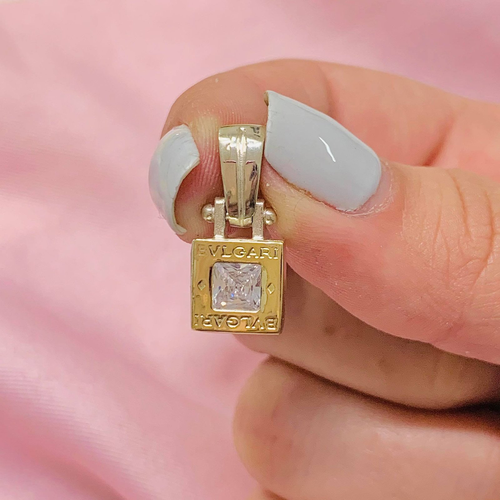 Dije mediano BVL cuadrado con cubic blanco de Plata y Oro