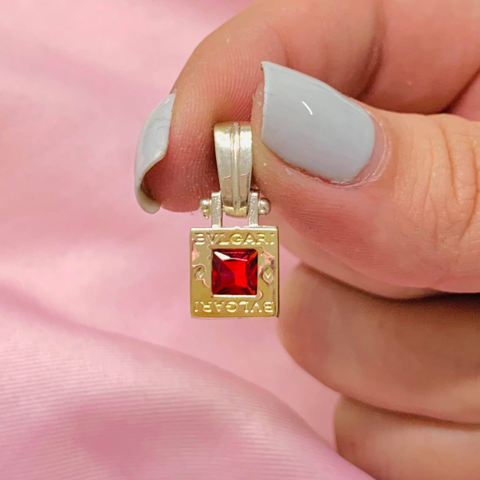 Dije mediano BVL cuadrado con cubic rubi de Plata y Oro