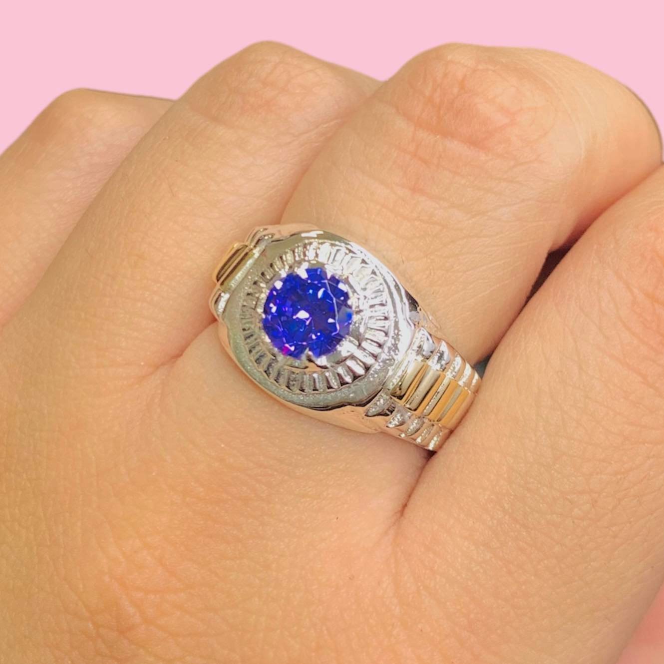 Anillo para hombre rolex Grande con cubic Amatista para Hombre Plata y Oro