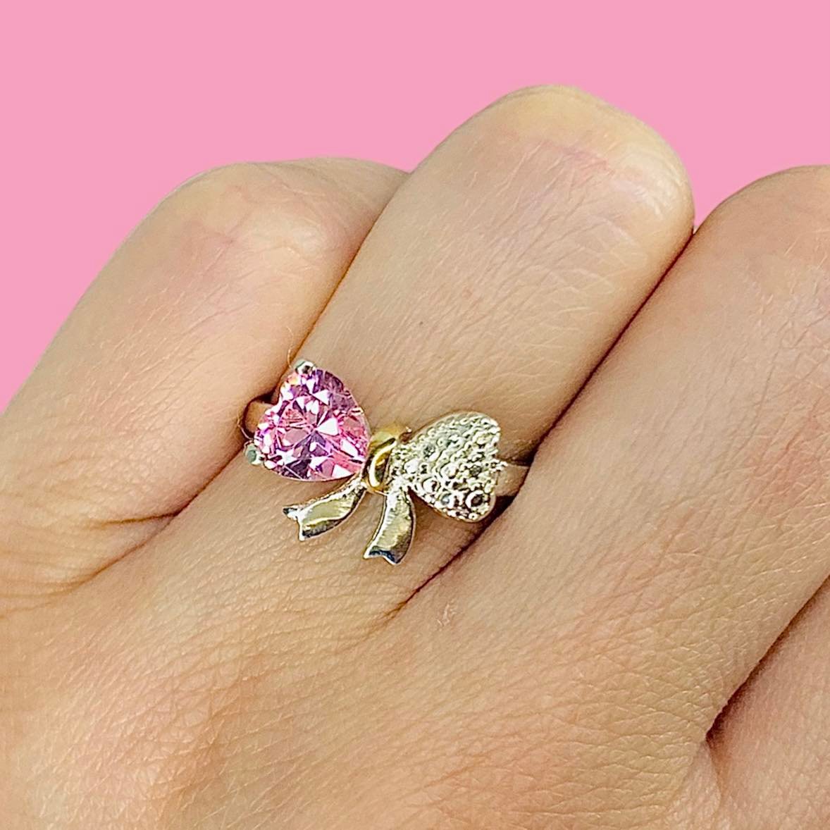 Anillo Moño con Cubic Rosa Plata y Oro