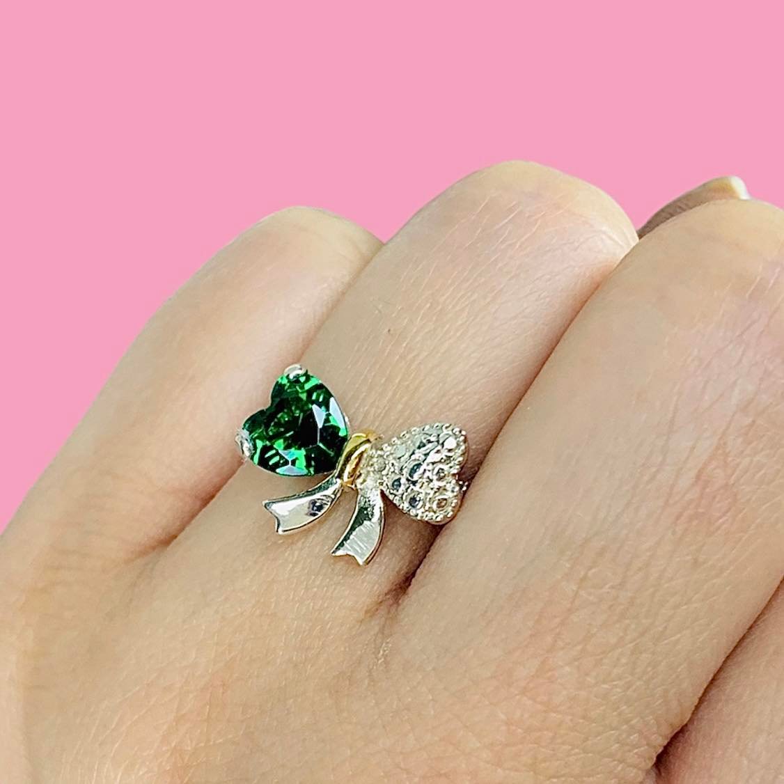 Anillo moño con cubic esmeralda de Plata y oro