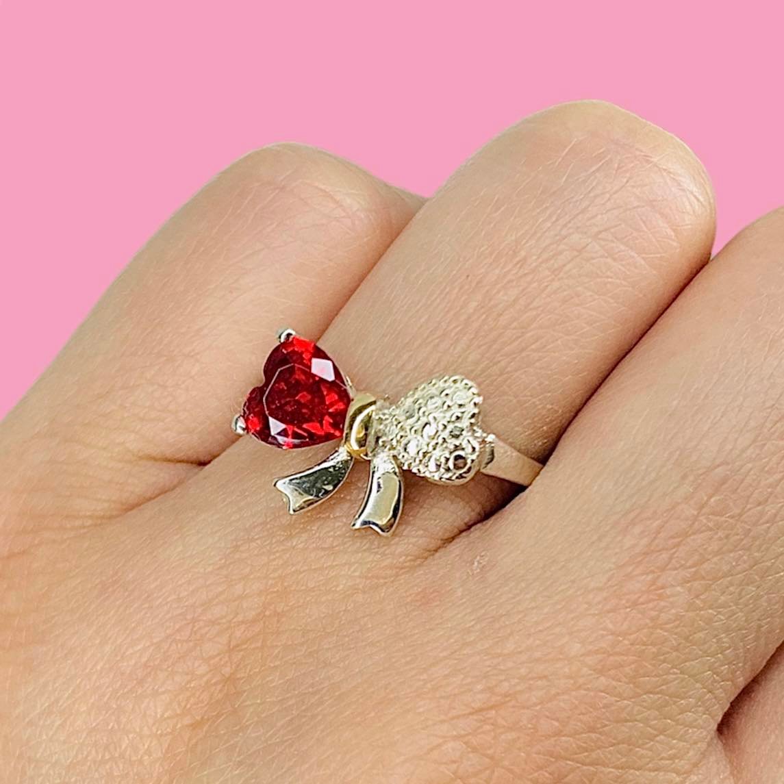 Anillo moño con cubic rubi de Plata y oro