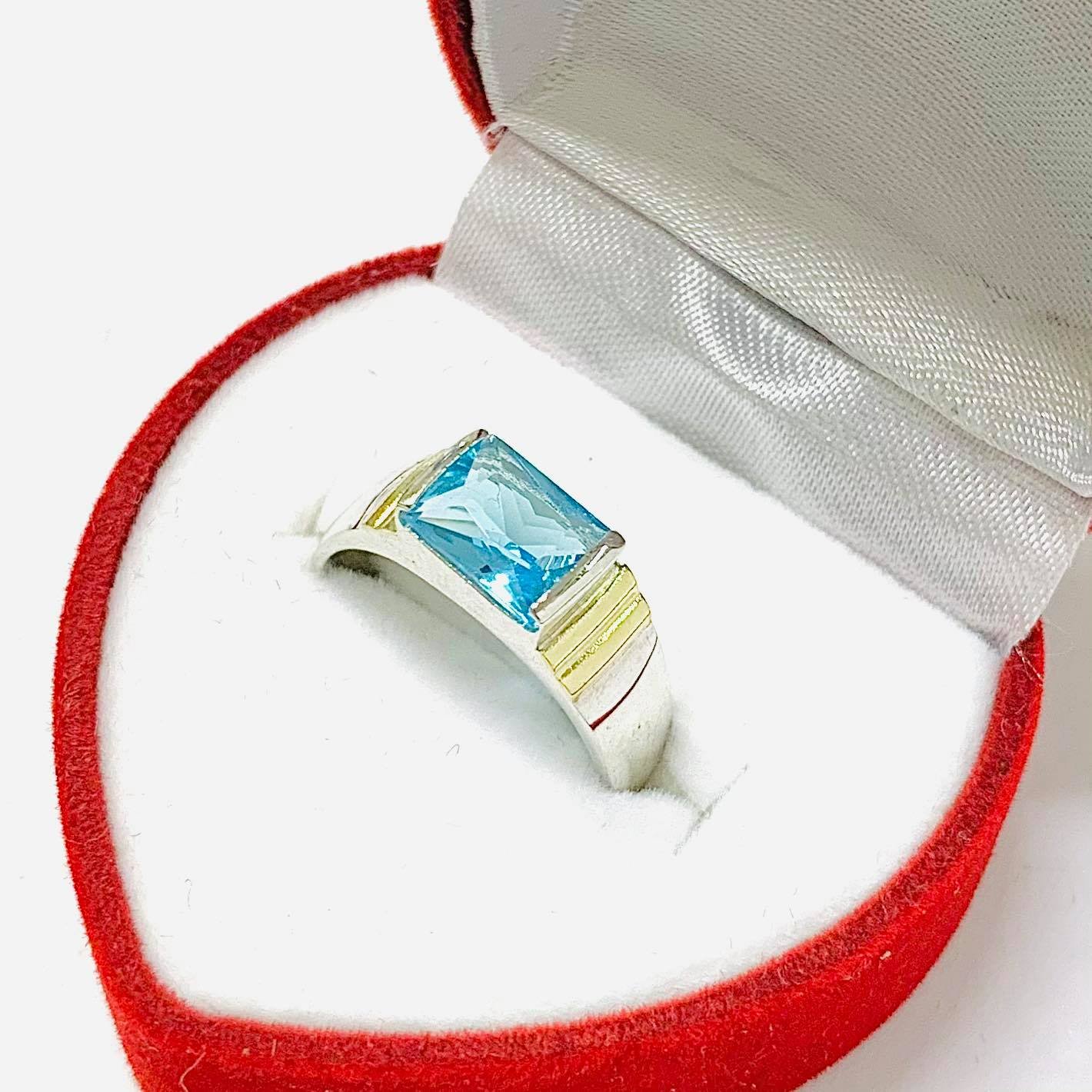Anillo Olivia con piedra agua de Plata y Oro