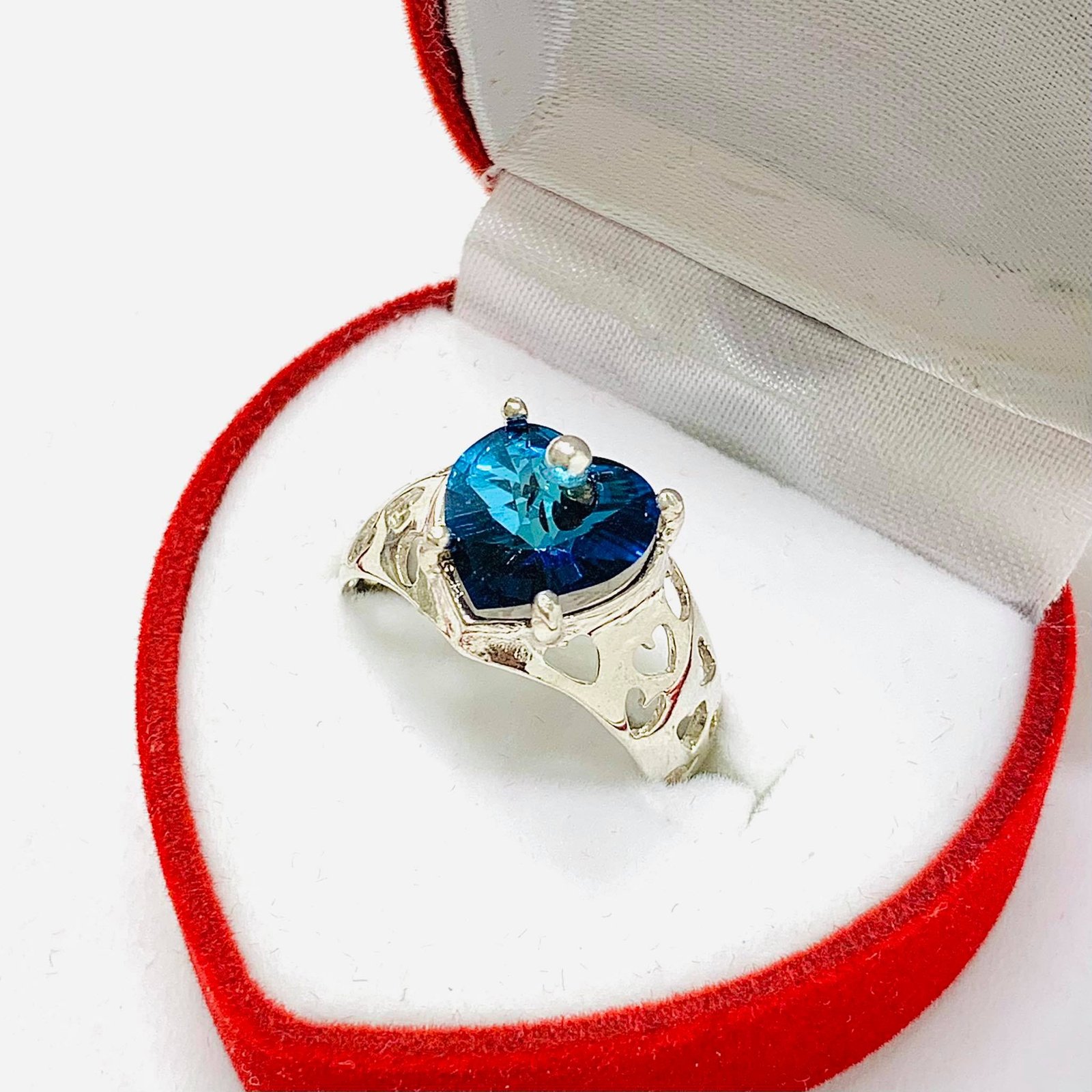Anillo Corazon Con Swarovski Bermuda blue Plata 925