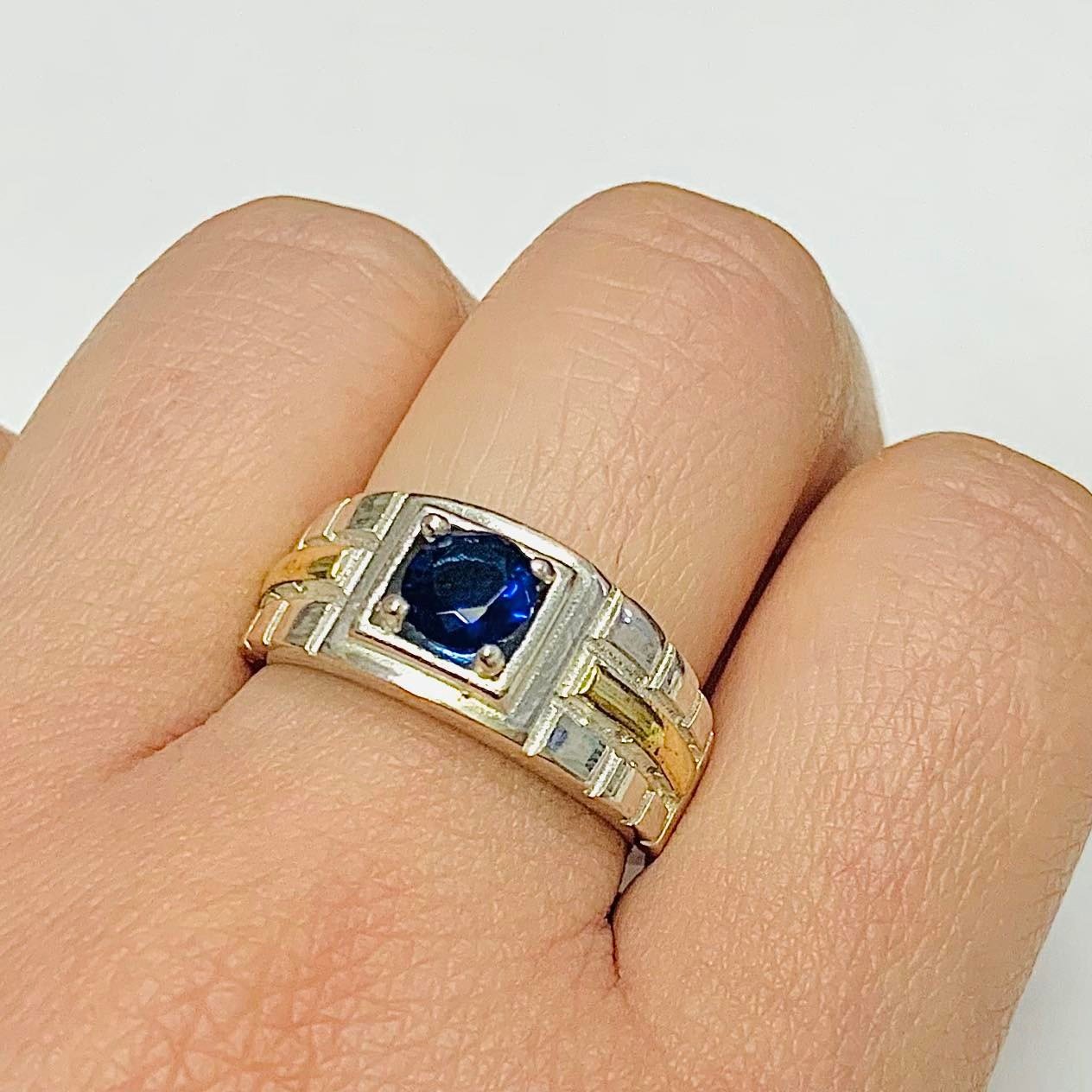 » anillo para hombre con cubic Zafiro Plata y Oro