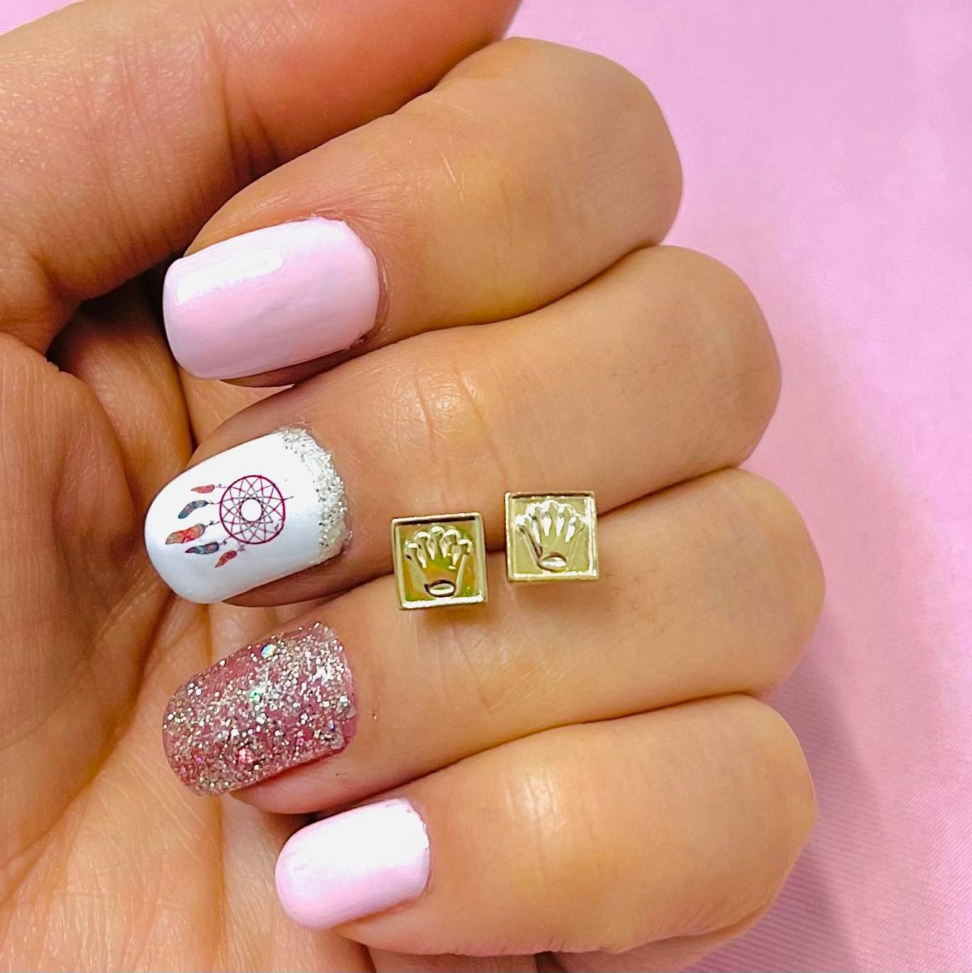 Aritos Cuadrado corona Rolex chico de Plata y Oro